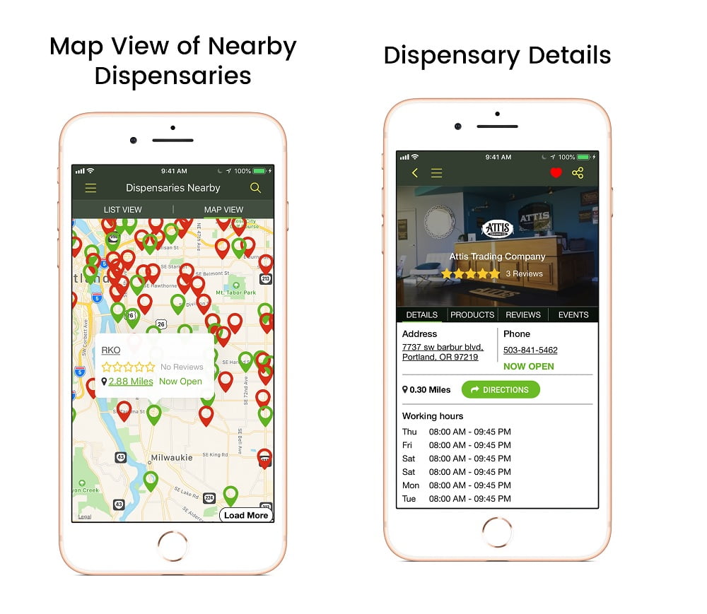 Product Nearby: Users can quickly search for products from nearby dispensaries in real time. Users can also view information about attributes, photos, reviews for products available.