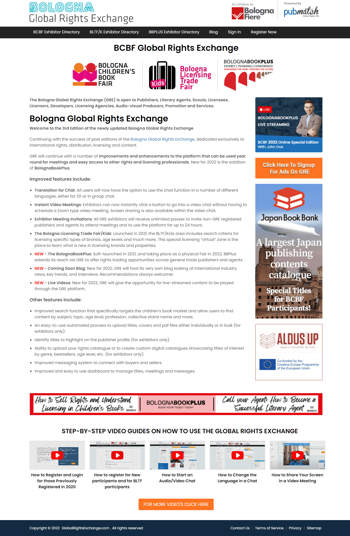 - The BolognaBookPlus (BBPlus): This was soft-launched in 2021 and is taking place as a physical fair in 2022. BBPlus extends its reach through Global Rights Exchange to provide rights trading opportunities across general trade publishers and agents.