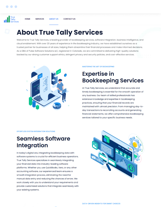 Pulse Solutions worked closely with True Tally Services to understand their goals and create a website tailored to their unique needs. The project included the following key elements: